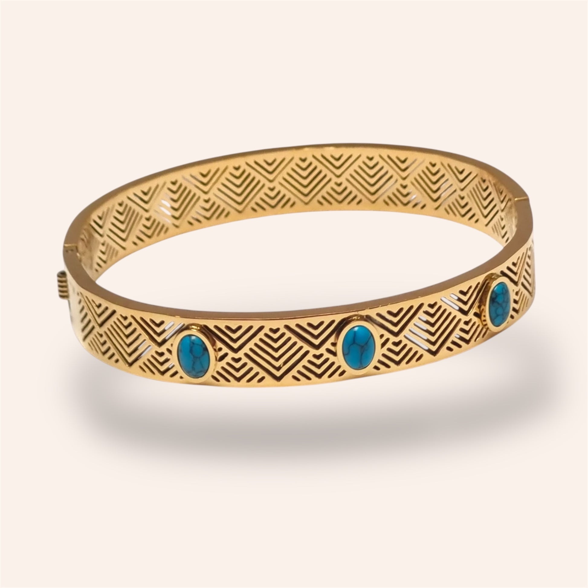 Crafted with precision and care, the structured yet comfortable design sits gracefully on the wrist, making it perfect for everyday sophistication as well as elevated occasions. The turquoise stones symbolize calm, confidence, and balance—adding meaning to its timeless aesthetic.