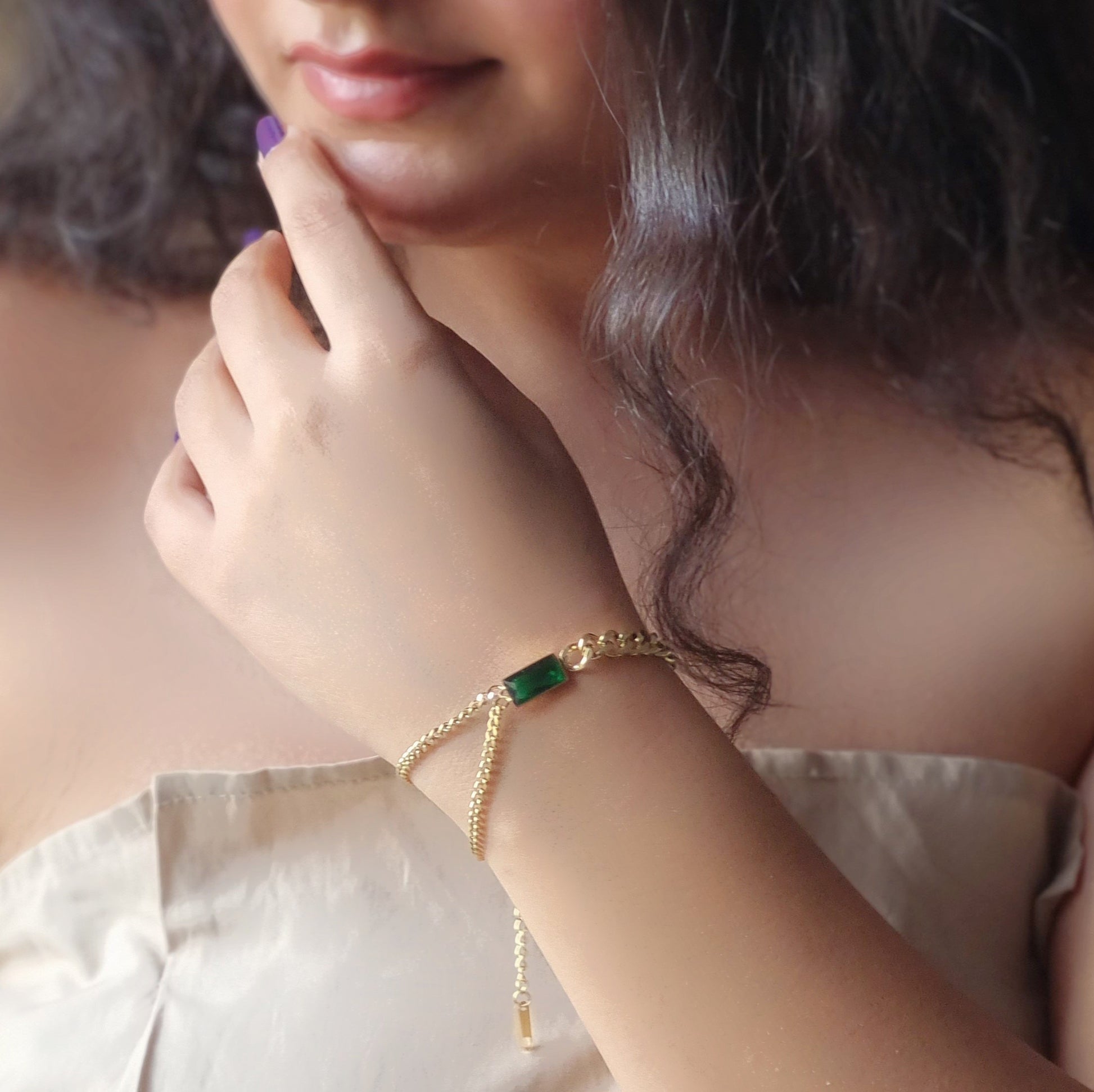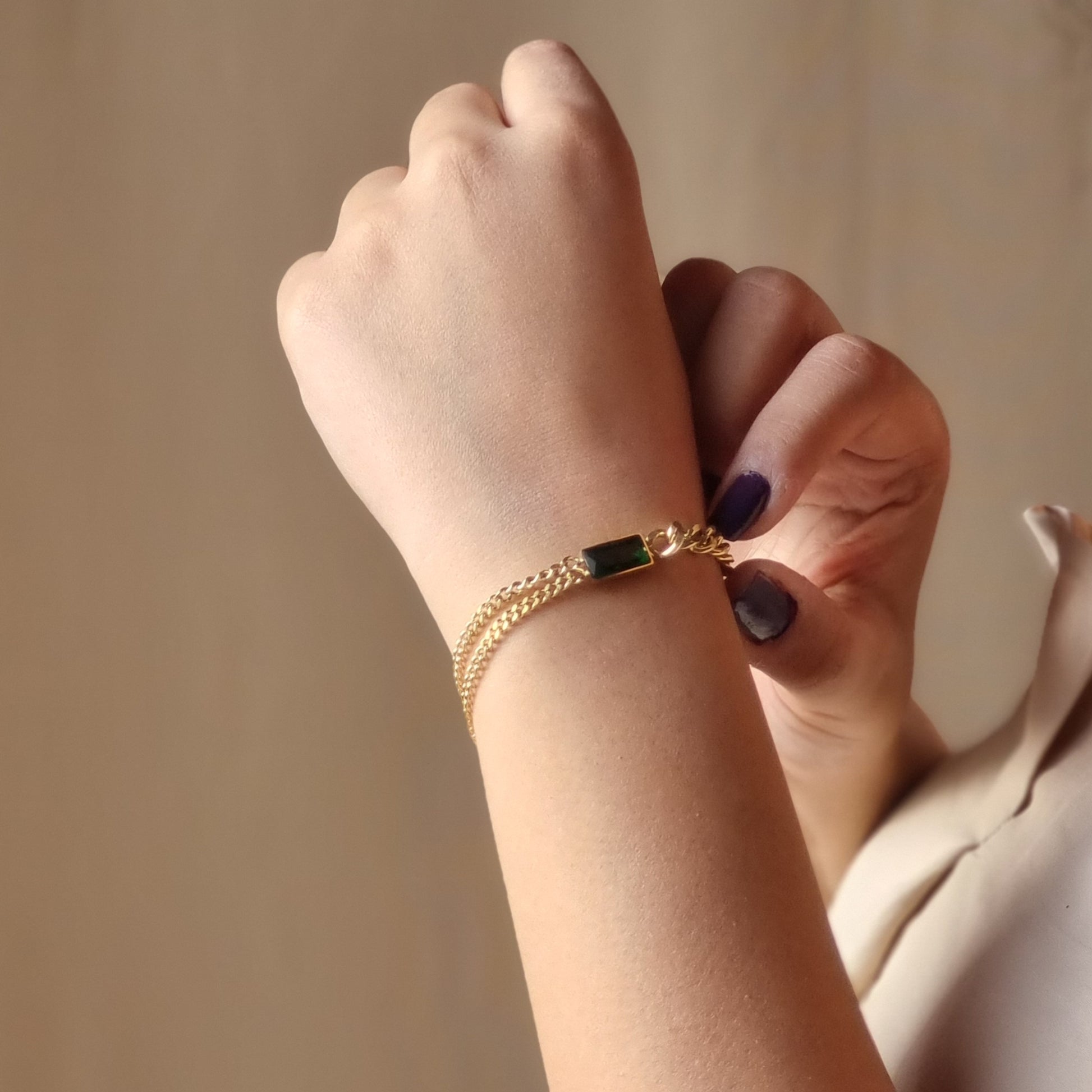 Emerald Accent Chain Bracelet – 316L Anti-Tarnish Stainless Steel